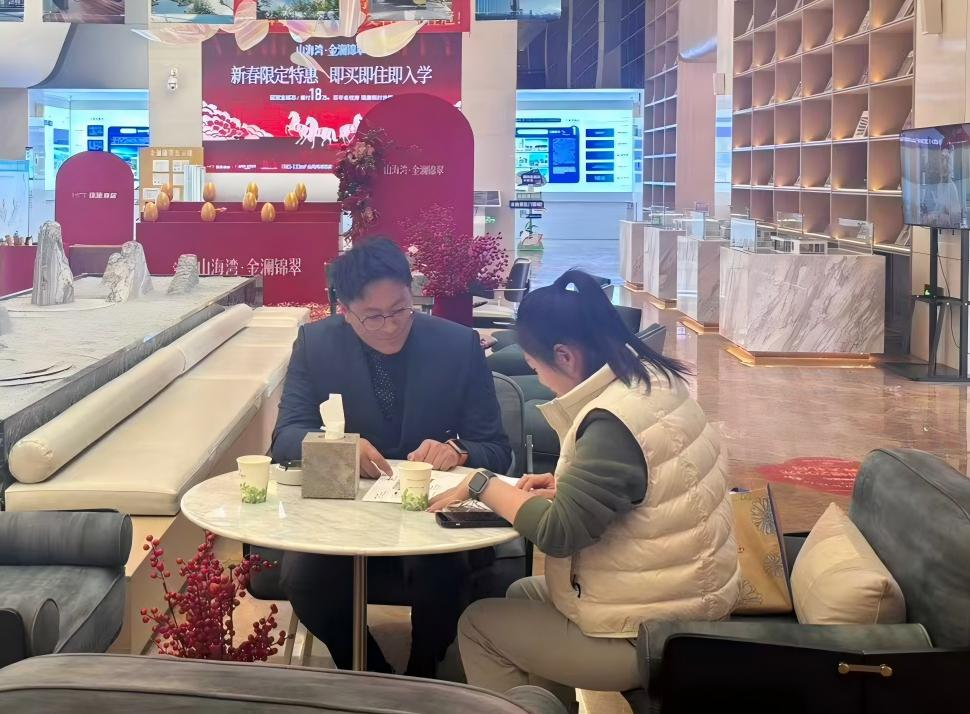 ▲在山海湾金澜锦翠营销中心,销售人员以专业高效、热情周到的服务标准,耐心细致解答客户咨询、推介项目户型、配套设施及优惠政策,全程贴心陪同客户看房选房,以高品质服务不断提升群众购房满意度与体验感,让购房群众在浓浓年味中感受到家的温暖与归属。