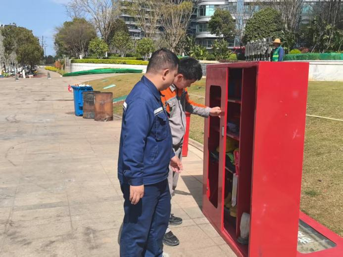 ▲在山海湾8号项目,工程、消防工作人员坚决扛起园区安全守护政治责任,结合春节期间安全管理特点,聚焦楼道、绿化带、地下车库等重点区域,加密巡查频次、细化防控举措,全面排查整治各类安全隐患,坚决筑牢新春安全防线。