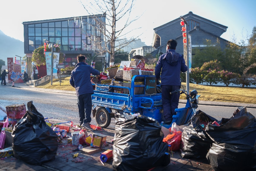▲在玛御谷温泉小镇,除夕之夜绚烂夺目的烟花于深邃山谷的上空绚丽绽放,五彩斑斓的光芒增添了传统节日浓郁的喜庆氛围。次日清晨,工作人员迅速行动,及时清理烟花燃放后遗留的纸屑、残留物等,让游客与住户在尽情欣赏灿烂烟花的同时,又切实维护了小镇环境的整洁与美观。