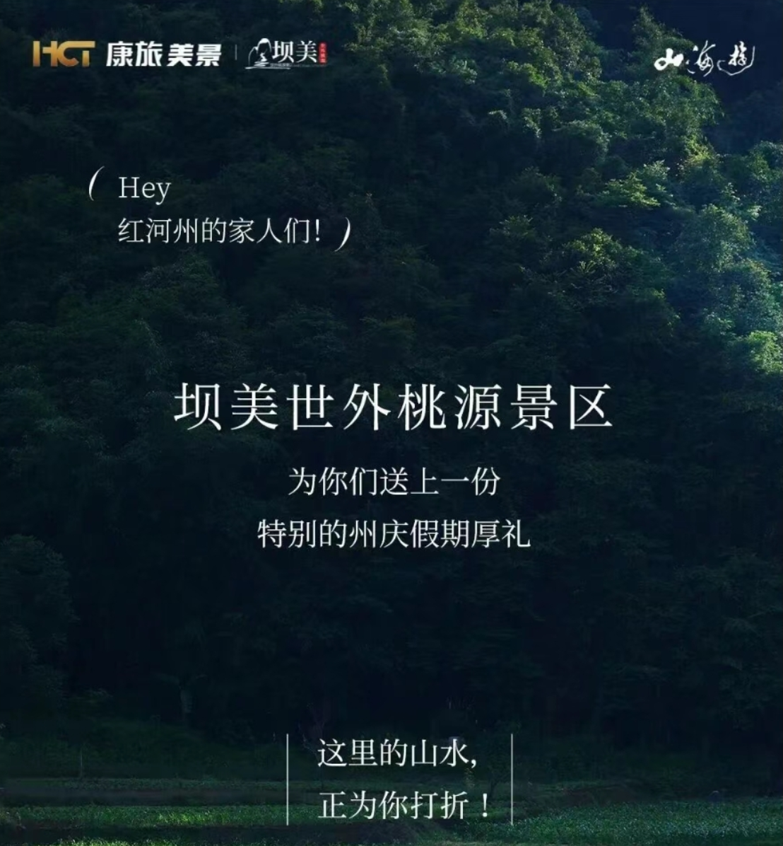 【游·在康旅】红河州的朋友请注意!整整16天,山海遊集团邀您半价畅游坝美世外桃源