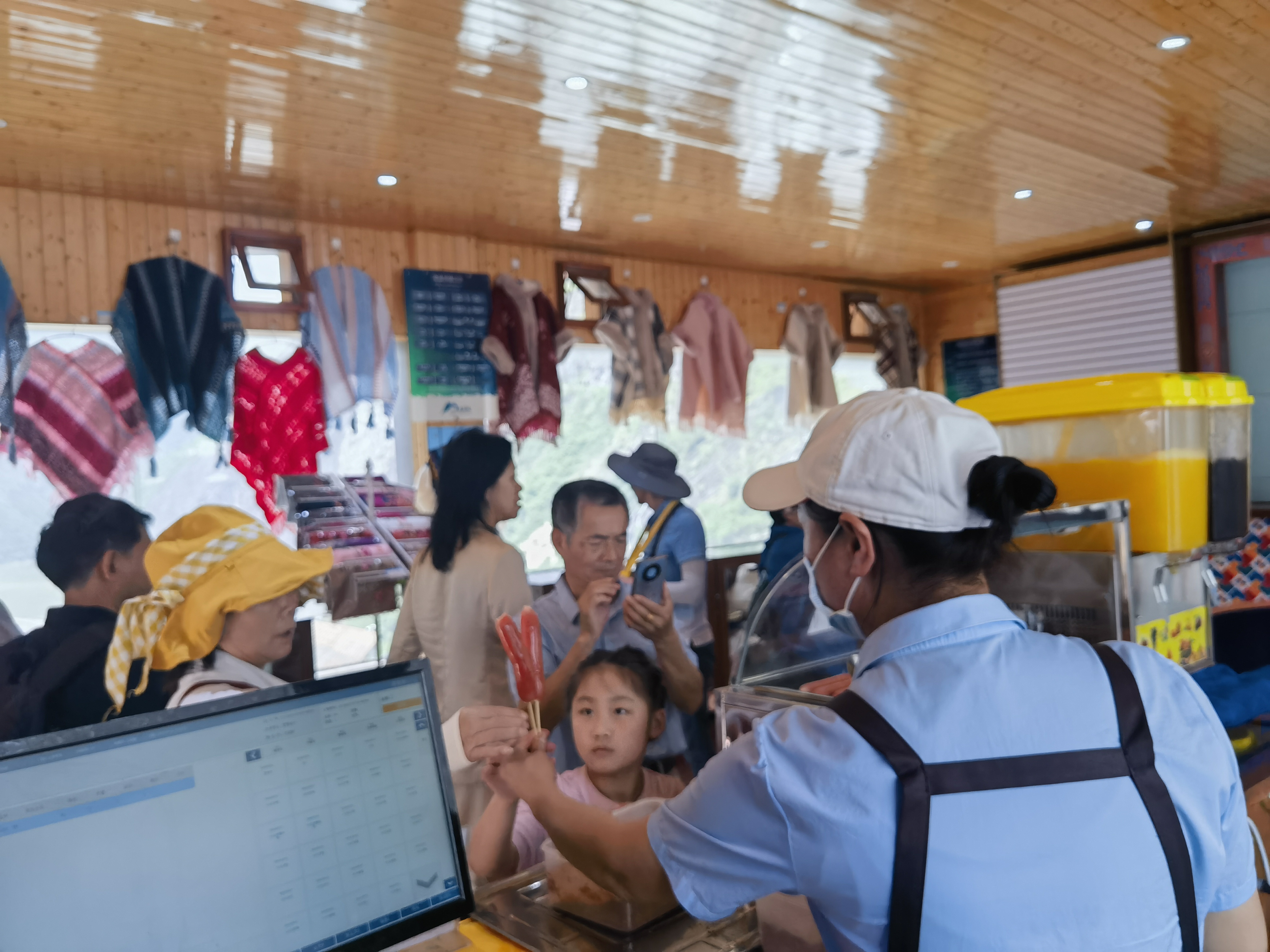 “您好,请问要吃点什么”。从点单上菜再到结账,你们每一步的服务都体现出对工作的热爱与热情,即使在最繁忙的时段,你们总能保持微笑以及礼貌的态度,在极限的时间内为游客提供最好的服务。
