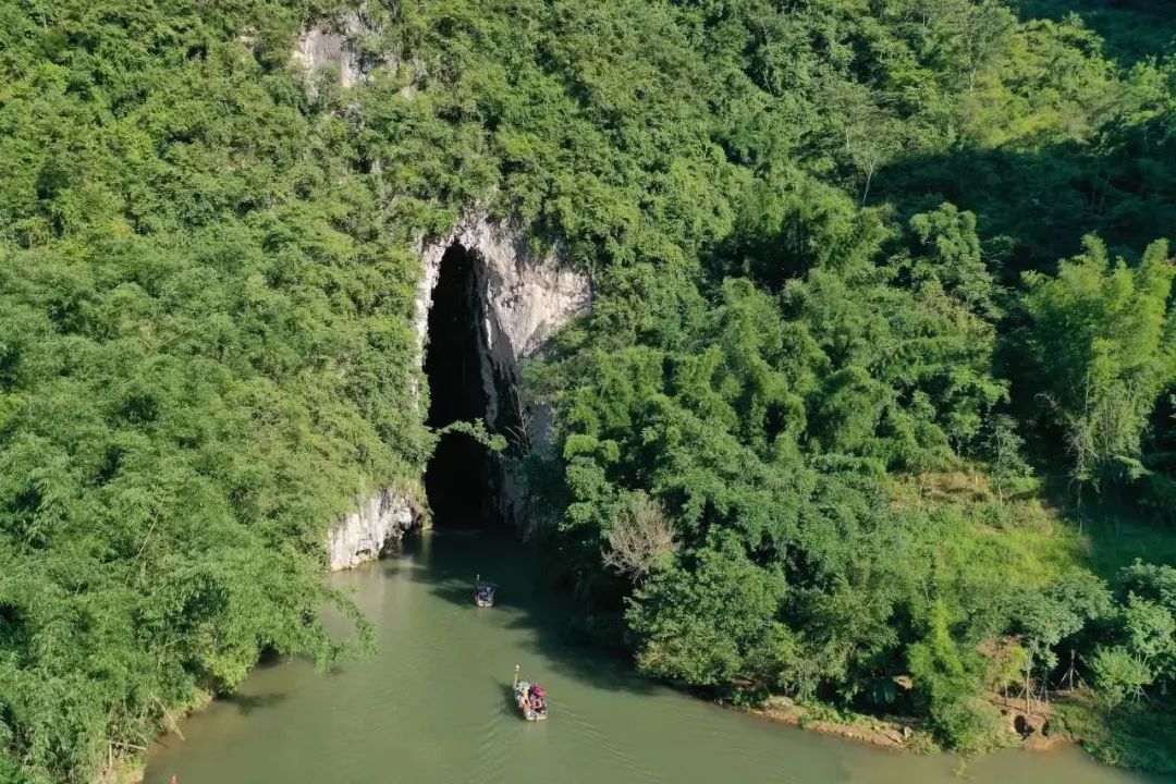 乘船而上,船只掠过丛林的荫翳,驶入洞口,很快便消失在黑暗中。带领着对旅途充满未知的人们,去探索溶洞另一端的世外桃源。屏息静气,聆听船体划过水面的哗哗声和石洞中滴水的滴答声。这一刻,你仿佛置身于陶渊明笔下的渔樵,穿越幽深、神秘的喀斯特水溶穴,向着近乎与世隔绝,被世人誉为现代“桃花源”的坝美村前进。