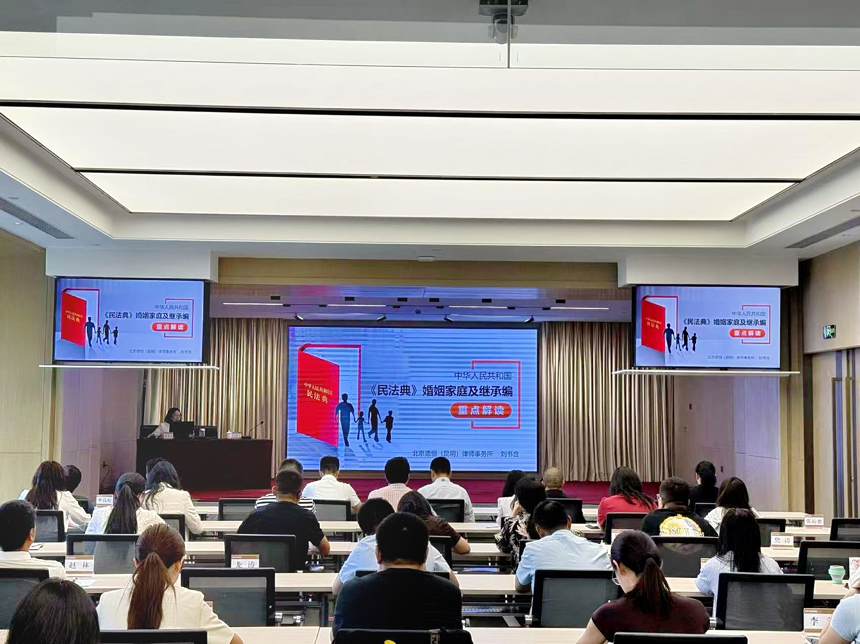 本次法治讲堂邀请到北京德恒(昆明)律师事务所刘书含律师到集团为干部职工作题为《民法典》婚姻家庭及继承编的专题讲座。讲座过程中重点介绍了婚姻家庭编、继承编两个章节,结合最新的司法解释及判例,围绕大家普遍关注的离婚纠纷、子女抚养、财产分割、共同债务认定、遗嘱继承等热点问题,以案释法,深入浅出地解读了《民法典》婚姻家庭及继承编的重点问题,帮助大家理解法律条文背后的价值导向,引导大家树立正确的婚姻家庭观念。此次法治讲堂的开展,推动了《民法典》化作大家可感可知的维权指南,让干部职工对婚姻家庭、继承等相关的法律知识有了更深入、更全面地了解。
