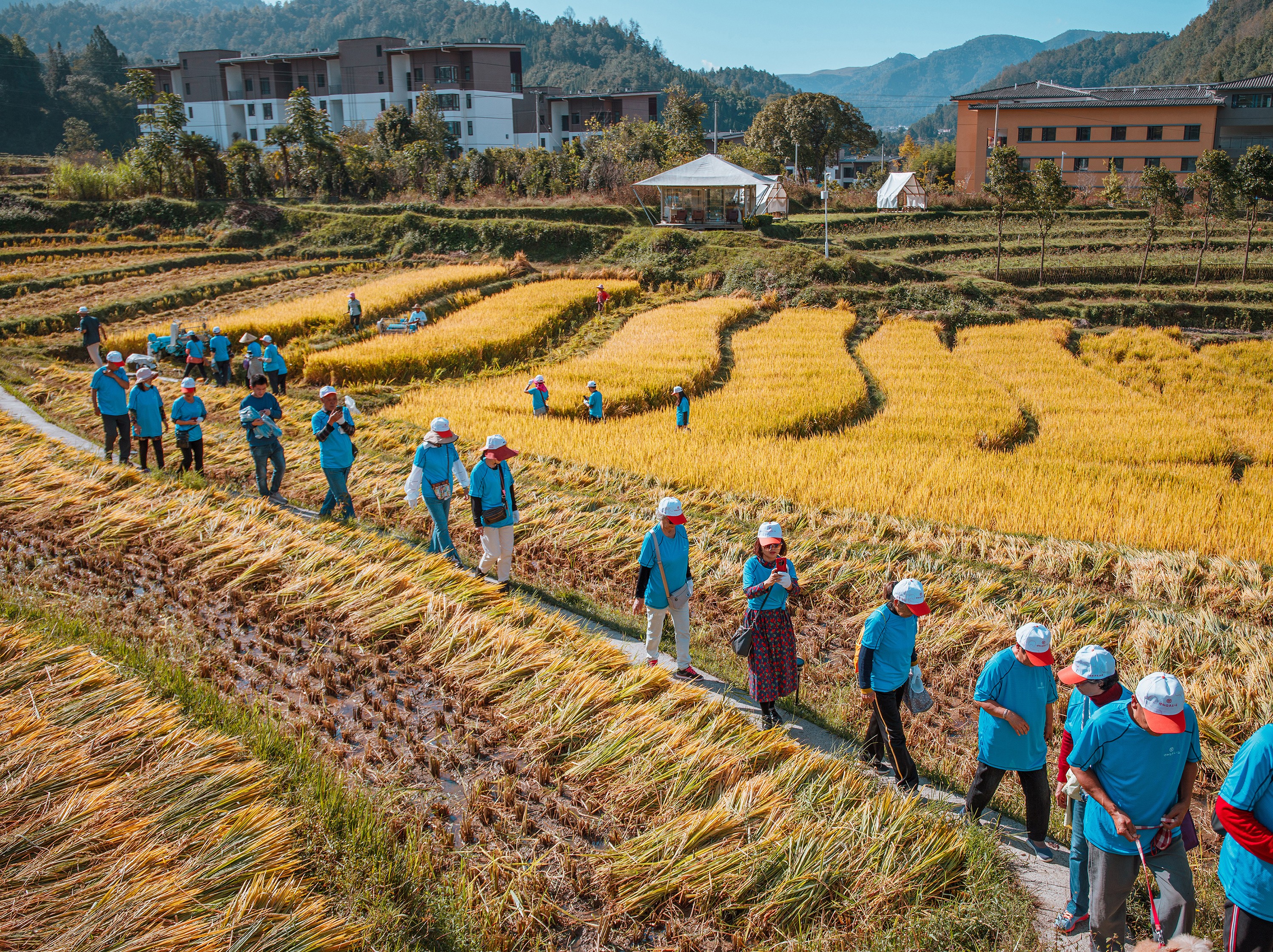 以无边的金色稻田为舞台,以蓝天远山为幕布,打造一场最具“稻”香特色的开幕表演,让我们相约金色稻浪,赏在地风情盛宴吧。