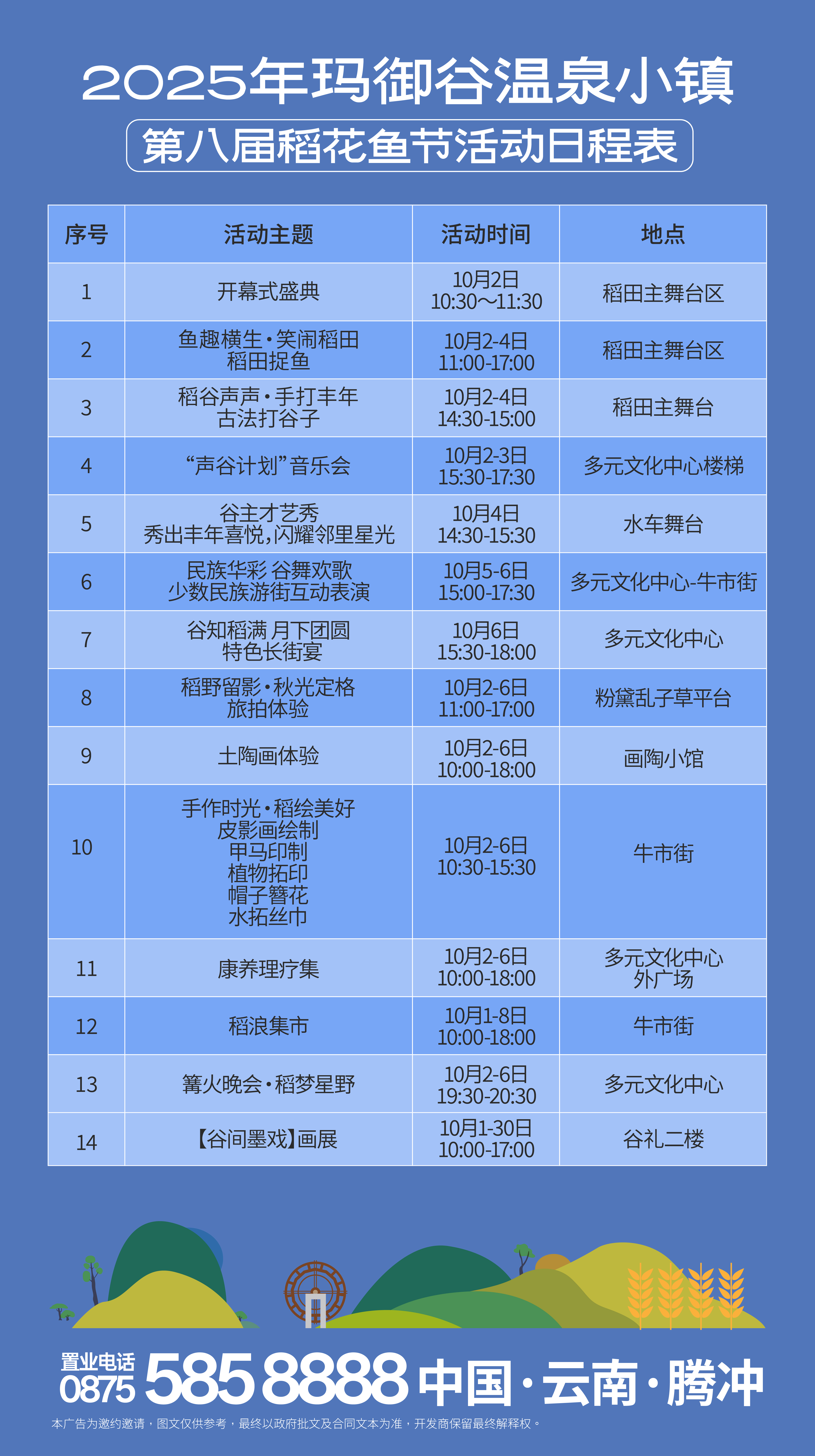 秋风吹皱了稻浪,也吹来了我们一年一度的约定。10月2日—10月6日,「玛御谷康养旅居文化周暨腾冲第八届稻花鱼节」即将启幕!