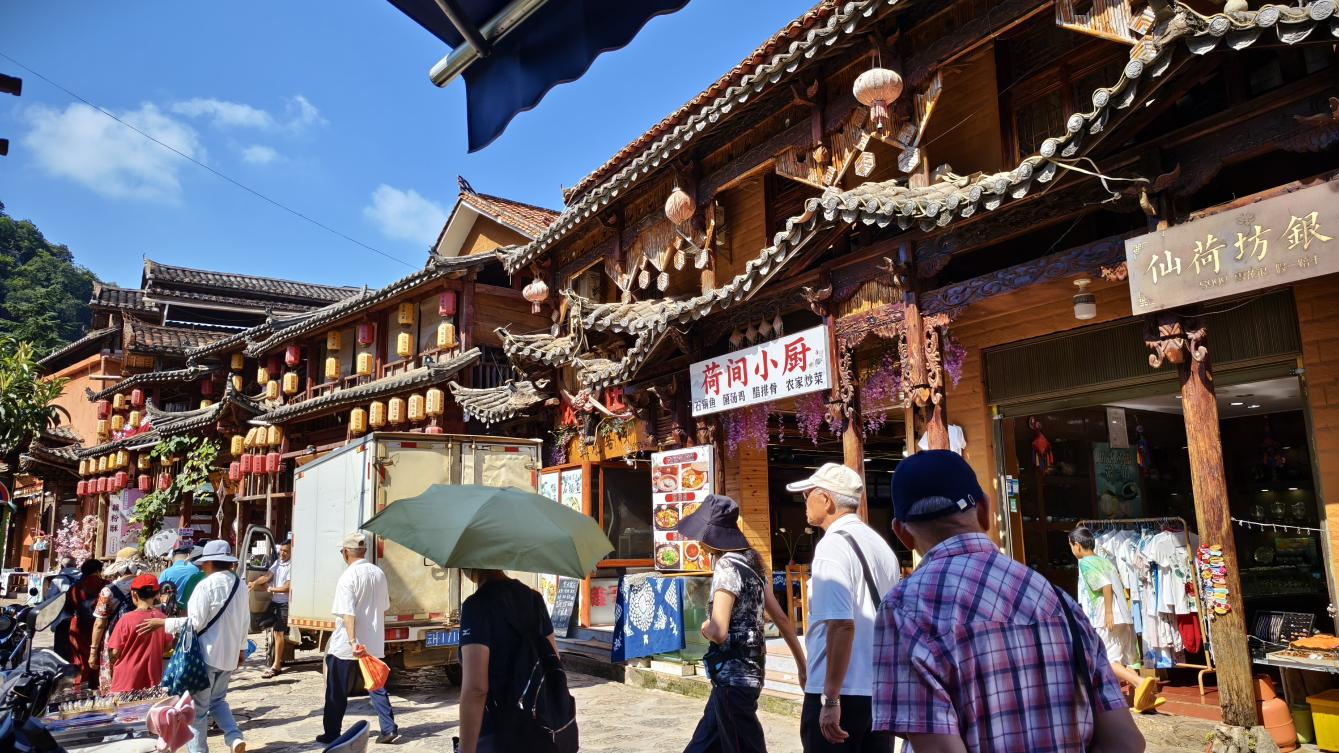 聚焦民生需求与区域发展,普者黑景区开通连接5个村寨的村景融通观光车线路,实现5A级景区与核心村落的无缝衔接、全域覆盖。以“岗位惠民、精准帮扶”为核心,着力打造青龙山公益性岗位示范街,帮扶23户困难群众增收,助力民生改善与品质提升。以食材供应合作为纽带,与普者黑村建立稳定合作关系,构建景区及本地食堂食材直采配送体系,有效打通民生服务与乡村发展的衔接通道,实现经济效益与社会效益双赢的良好局面。扎实推进土地流转与收益反哺工作,流转涉及4个乡镇约5700户农户的18071亩土地,每年支付地租约1983万元,为农户提供长期稳定的财产性收入,筑牢民生增收根基。构建多元利益共享机制,鼓励当地群众通过劳务合作等方式融入文旅产业链,与百花谷垂钓园、古井园等主体开展产业养湖及生态保护合作,在守护生态基底的同时,形成“群众参与、项目受益、生态向好”的良性循环,让发展红利切实惠及本土民生。