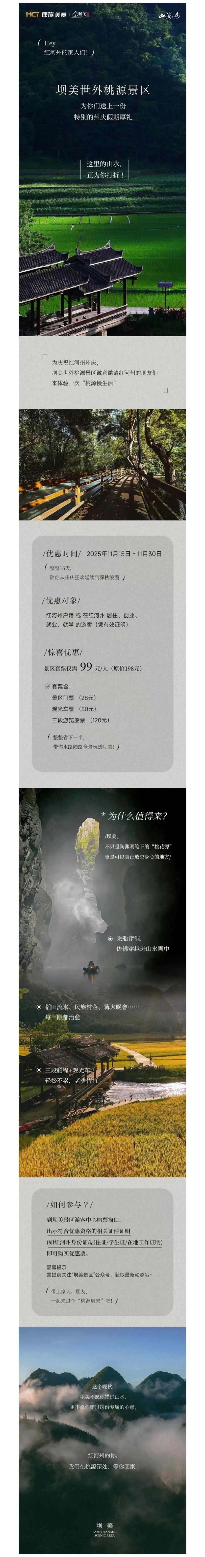 【游 · 在康旅】红河州的朋友请注意!整整16天,山海遊集团邀您半价畅游坝美世外桃源